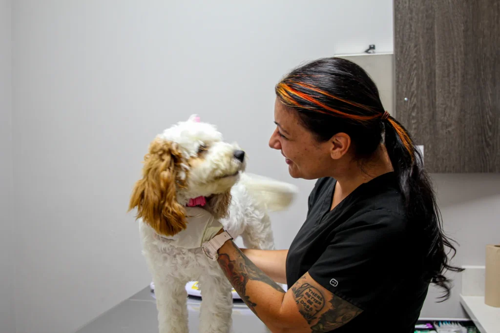 During your first visit, our team will welcome you into a calm exam room where most care is provided. We’ll discuss your pet’s history, perform a gentle physical exam, and give you plenty of time to ask questions. We also offer designated entrances for anxious or reactive pets to help reduce stress.